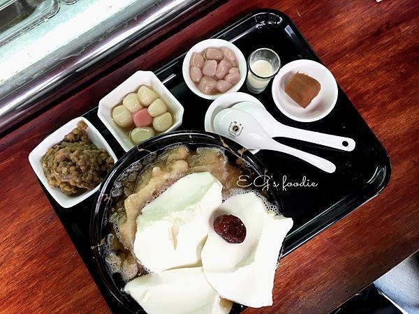 我們選了綠豆、湯圓、芋圓,另外地瓜以及煉乳每碗都會附贈,還有超多的陶鍋豆花以及一顆紅棗
