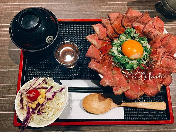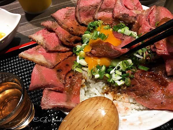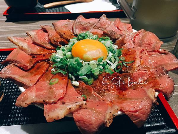 算到眼花你知道總共有幾塊肉嗎?總共16片呢!除了肉跟飯,還有醬汁以及青蔥還有生蛋在中間,一看到已經垂涎三尺,趕快來吃吃看!