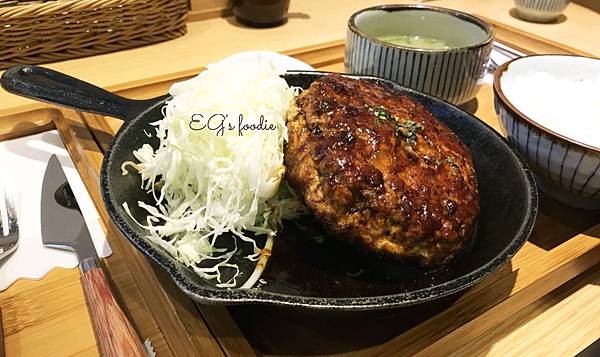 EG小評:不想排隊建議平日來吃,第一次吃推薦他們招牌定食秘傳醬煎鐵板豬排,但EG更推薦漢堡排,真的很好吃,由於漢堡排的關係,醬汁更融入在絞肉中,更下飯 (其實可以吃更多飯哈哈哈) NG!! 生菜放在鐵盤上不喜歡,這樣感覺都變熱了,高麗菜絲不是就要吃冰冰涼涼的嗎?而且放置鐵盤中會沾到醬汁,要搭配生菜所提供的油醋醬也不是非常方便。