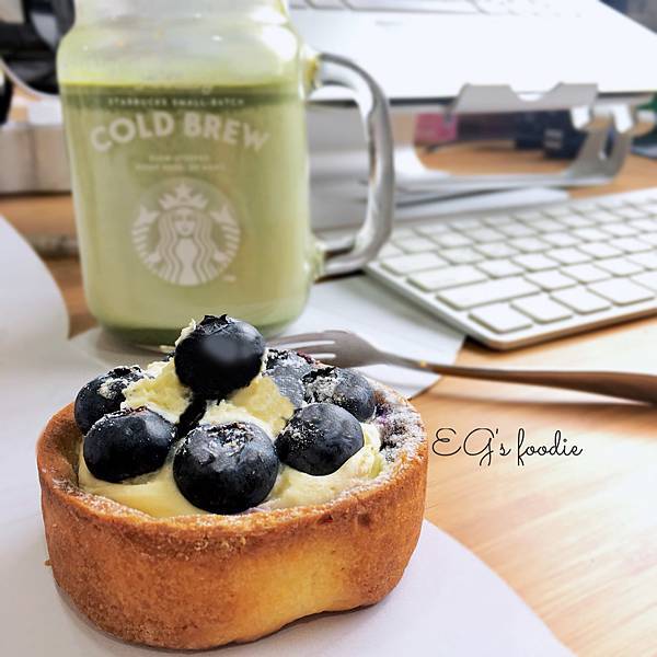 藍莓塔塔皮酥脆、藍莓新鮮不酸、塔上還有滿滿卡士達讓你就算吃到酸藍莓也是微微一笑