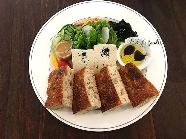 佛卡夏麵包佐油醋$180 +胡麻豆腐野菜沙拉