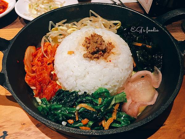 ▼我的傑作!看起來超好吃的~記得拌一拌喔,旁邊韓式甜辣醬跟拉粉可以斟酌加些在飯裡一起拌更夠味